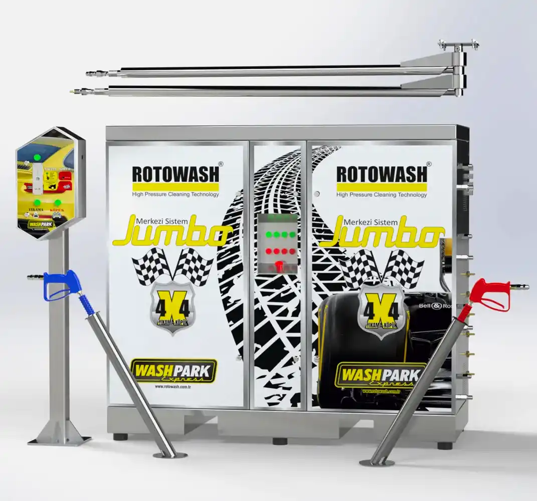 Geleneksel 1 TL ile çalışan yıkama ve köpük makinelerinin yanı sıra, COMPACT merkezi sistem yıkama makinesi jeton veya barkod sistemiyle kendi içinde, işletmenizde bulunan peron sayısı kadar yıkama ve köpüğü ayrı ayrı peronlarınıza dağıtım yapabilen bir teknolojiye sahiptir. COMPACT merkezi yıkama sistemleri, sizin belirleyeceğiniz tek bir noktadan aktif peronlarınıza yıkama ve köpük dağıtımı yapar. 360° derece dönebilen hortum pervaneleri, tabanca yuvaları ve para atma üniteleri (kiosk) sayesinde, görüntü kirliliği yaşamadan yıkama yapmak sizin için adeta bir hobi haline gelecektir. En yeni teknolojileri sizler için geliştiren ve kullanım rahatlığını bir araya getiren COMPACT merkezi yıkama sistemleri, yüksek kir çözme gücü ve compact tasarımı ile zamandan, yerden ve iş gücünden tasarruf etmenizi sağlar.