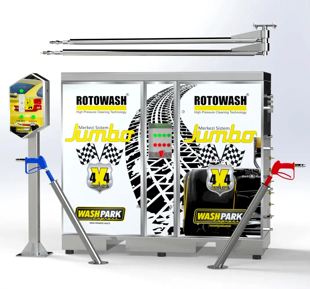 Geleneksel 1 TL ile çalışan yıkama ve köpük makinelerinin yanı sıra, COMPACT merkezi sistem yıkama makinesi jeton veya barkod sistemiyle kendi içinde,  işletmenizde bulunan peron sayısı kadar yıkama ve köpüğü ayrı ayrı peronlarınıza dağıtım yapabilen bir teknolojiye sahiptir. COMPACT merkezi yıkama sistemleri, sizin belirleyeceğiniz tek bir noktadan aktif peronlarınıza yıkama ve köpük dağıtımı yapar. 360° derece dönebilen hortum pervaneleri, tabanca yuvaları ve para atma üniteleri (kiosk) sayesinde, görüntü kirliliği yaşamadan yıkama yapmak sizin için adeta bir hobi haline gelecektir. En yeni teknolojileri sizler için geliştiren ve kullanım rahatlığını bir araya getiren COMPACT merkezi yıkama sistemleri, yüksek kir çözme gücü ve compact tasarımı ile zamandan, yerden ve iş gücünden tasarruf etmenizi sağlar.