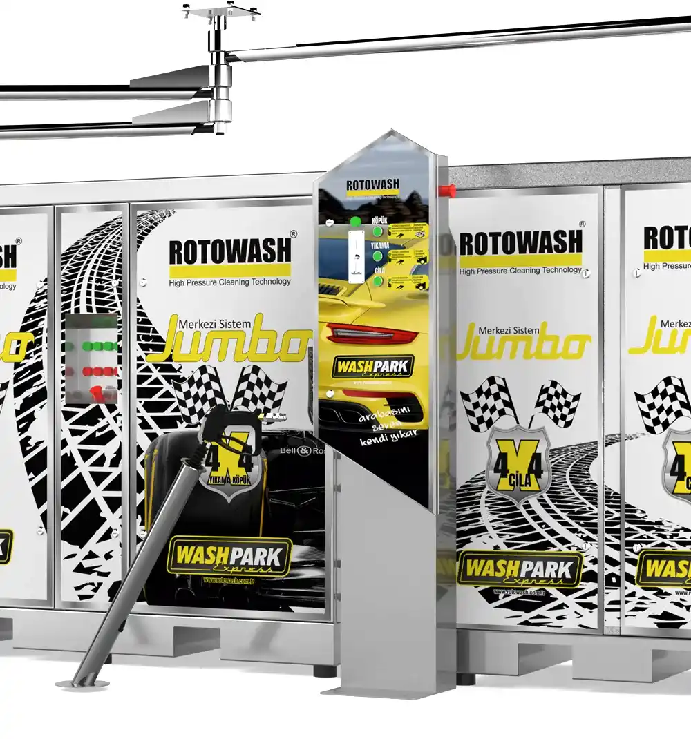 En yüksek self servis teknolojilerinin birleştiği JUMBO merkezi yıkama sistemlerinde 24 saat araç yıkama imkanınız mevcuttur. Geleneksel 1 TL ile çalışan yıkama ve köpük makinelerinin yanı sıra, JUMBO merkezi sistem yıkama makinesi jeton veya barkod sistemi ile kendi içinde, işletmenizde bulunan peron sayısı kadar yıkama ve köpüğü ayrı ayrı peronlarınıza dağıtım yapabilen bir teknolojiye sahiptir. JUMBO merkezi yıkama sistemleri, makineye yeterli su girişi olmadığında kendini kapatıp korumaya alır.